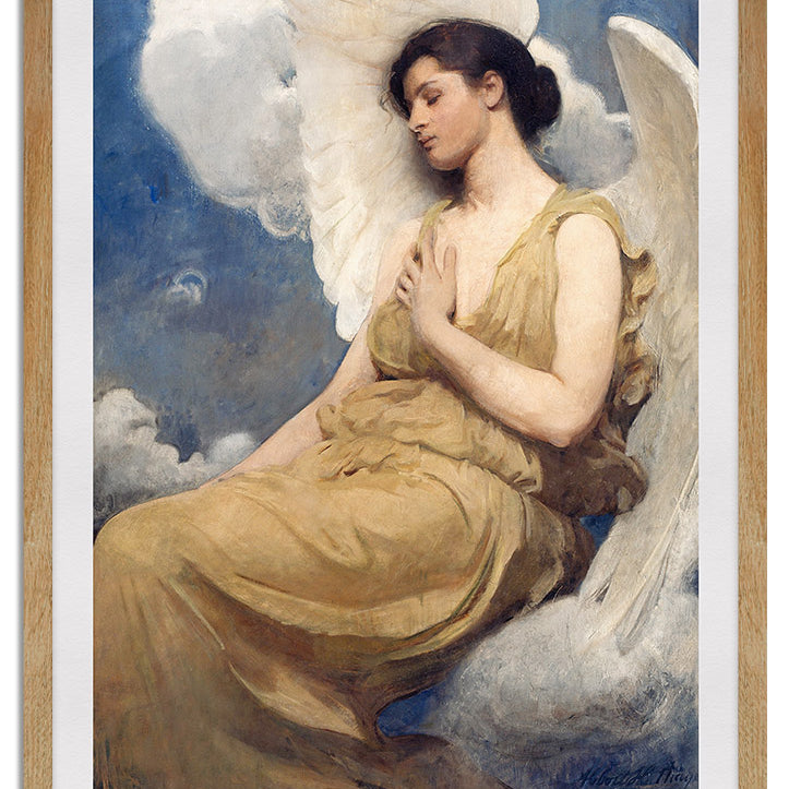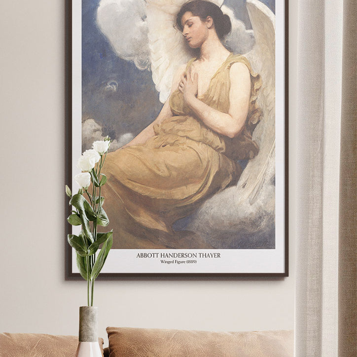 This remarkable art print showcases Abbott Handerson Thayer's iconic painting, Winged Figure. It is a mesmerizingly beautiful piece of art, displaying a graceful angelic figure surrounded by a serene sky. The hues are gentle and toned down, yet still capture the spectator's eye. This artwork is a token of the loveliness of nature, and a reminder of the sacred.