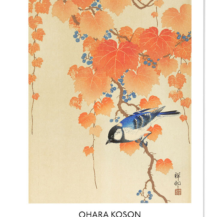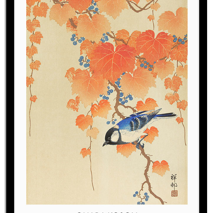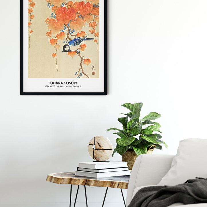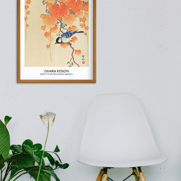 Great Tit on a Branch art poster by Ohara Koson. Vintage Japanese wall art.