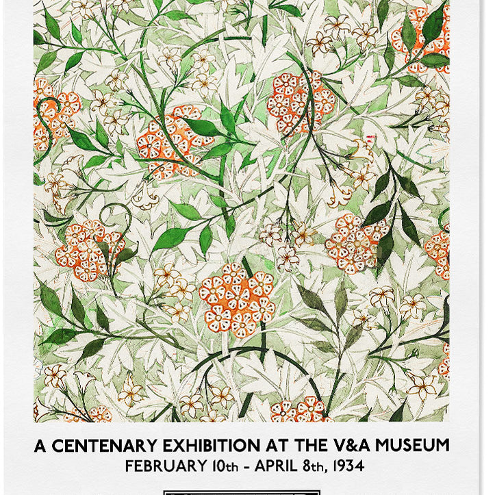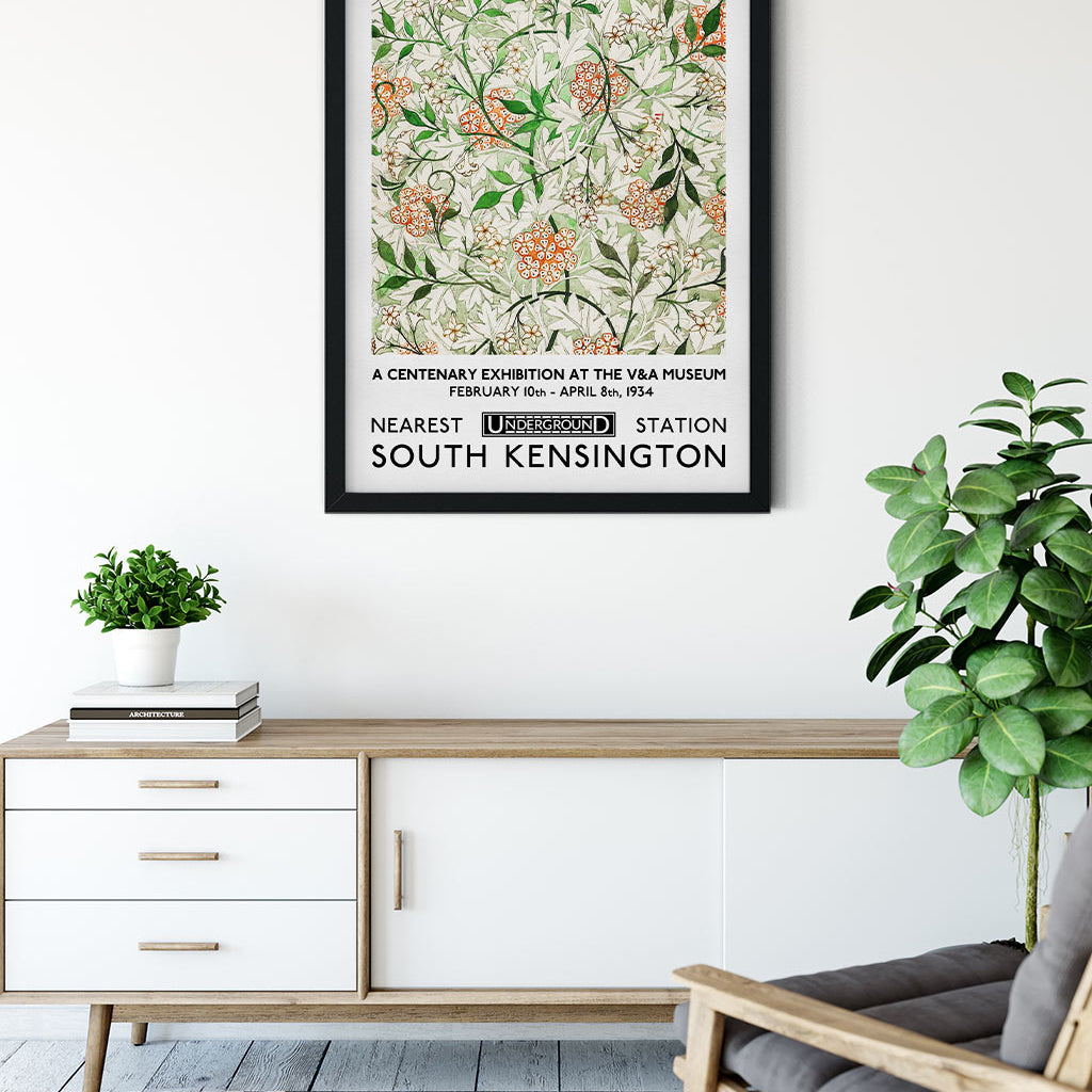 Exhibition art print by the famous artist William Morris in green and red colours. A William Morris print will never go out of style and is a great choice of art to decorate your home.