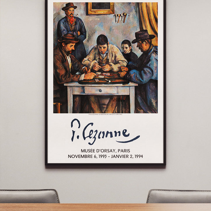 Paul Cézanne poster featuring his artwork Card Players. Cézanne is one of the great Post-Impressionist painters of the 19th century, renowned for his landscapes, portraits, and complex still lifes.