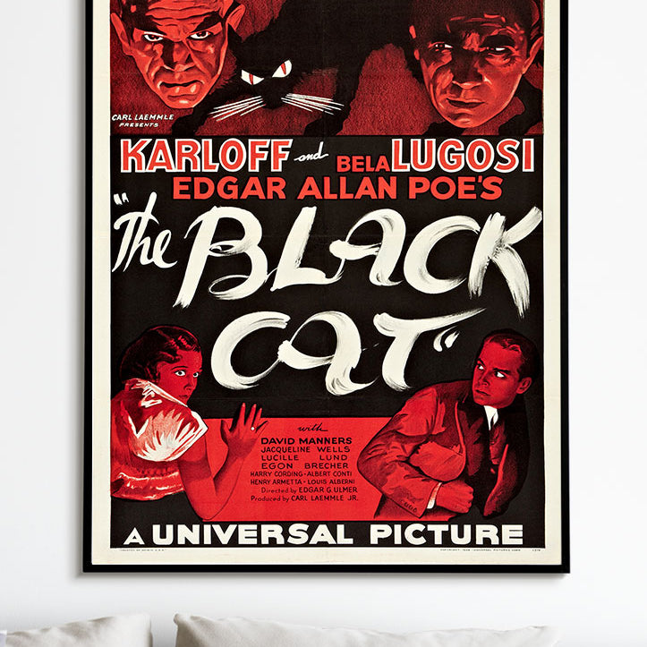 The Black Cat Movie Poster brings you classic horror with Bela Lugosi in a vintage style perfect for horror film fans. High quality printing and vibrant colors come together to make this a timeless piece of art.