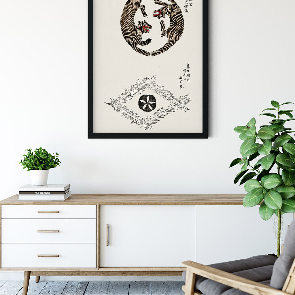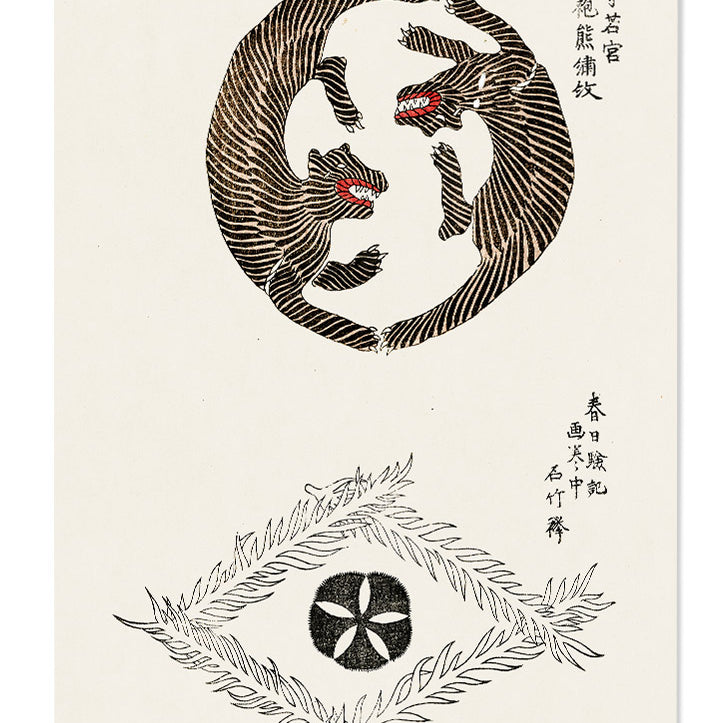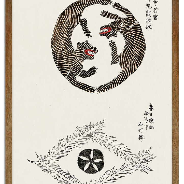 Tigers by Taguchi Tomoki art print. Taguchi Tomoki is a Japanese artist who is known for his unique woodblock prints. He is a master of his craft and is revered for his artistic works.