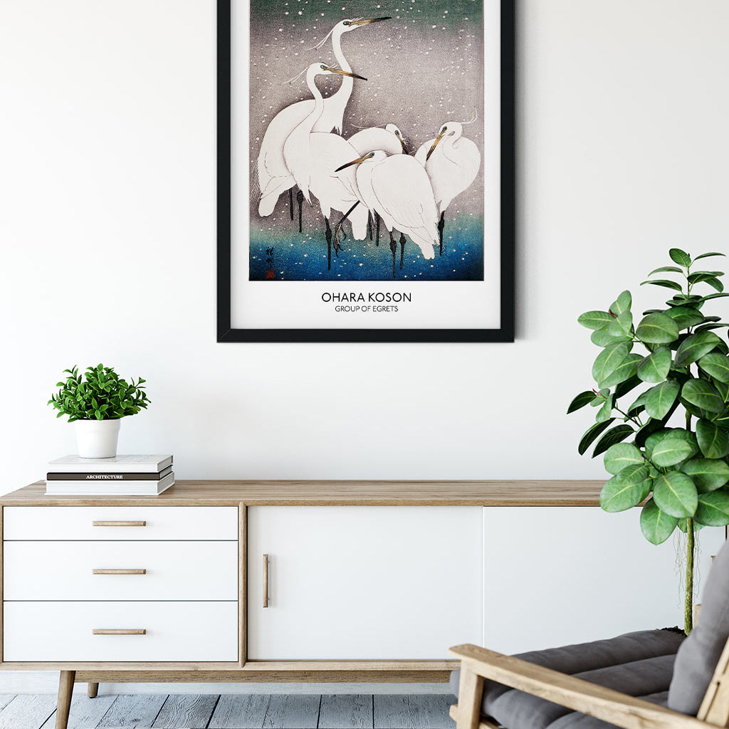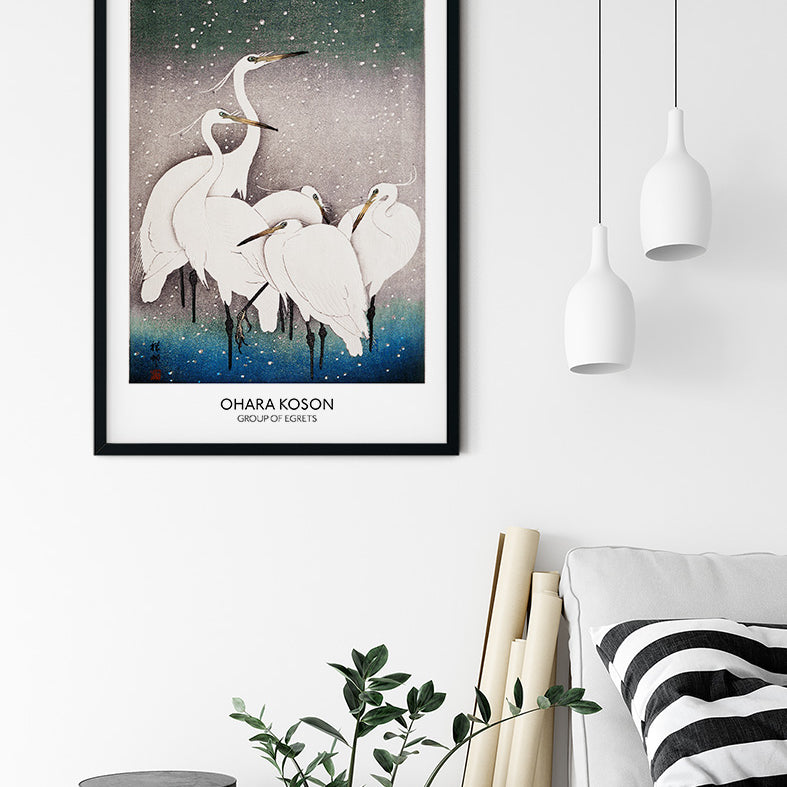 Egrets art poster by Ohara Koson. High quality giclée prints on art poster paper. Free delivery on eligible orders.