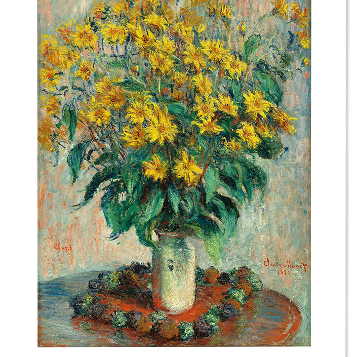 Claude Monet art print featuring his floral still life painting Jerusalem 'Artichoke Flowers'. Discover the beauty of Claude Monet's art with our stunning selection of art prints and exhibition posters.