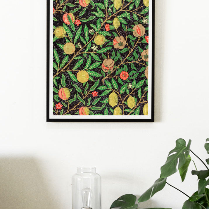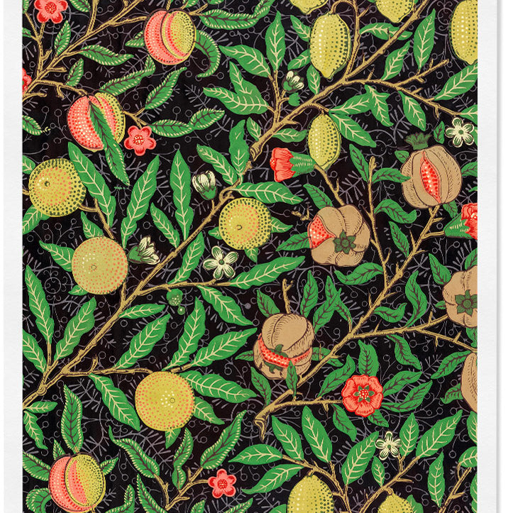 This famous pattern by William Morris has yellow, red, green and black colours. Printed with a white border and without text this art print can be your next perfect home decoration.