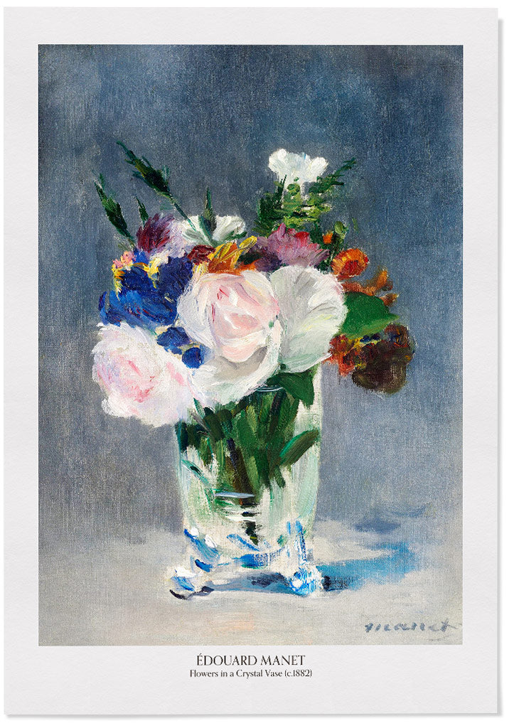 A beautiful art print of Édouard Manet featuring his painting 'Flowers in a Crystal Vase'. A beautiful art print of Édouard Manet featuring his painting 'Flowers in a Crystal Vase'.