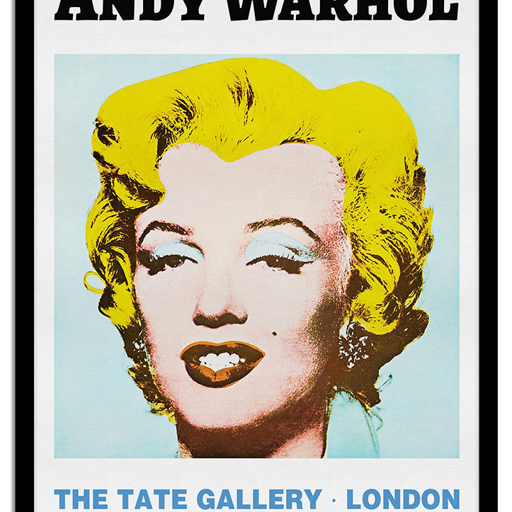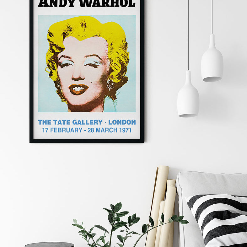 Modern art exhibition poster by Andy Warhol featuring his painting of Marilyn Monroe.
