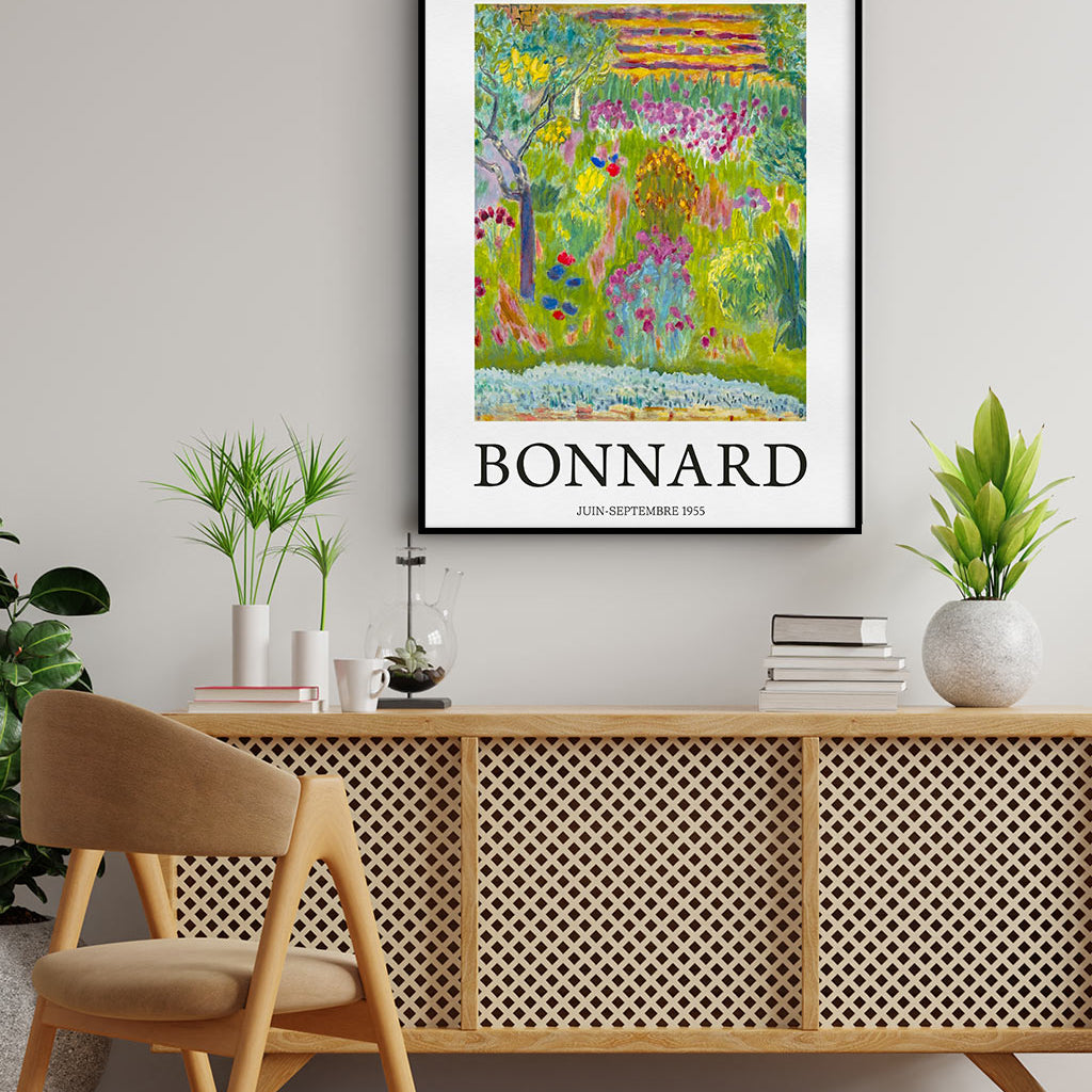 Art exhibition poster by Pierre Bonnard featuring his painting the "Garden". Pierre Bonnard was a French painter, illustrator and printmaker, known especially for the stylized decorative qualities of his paintings and his bold use of color.