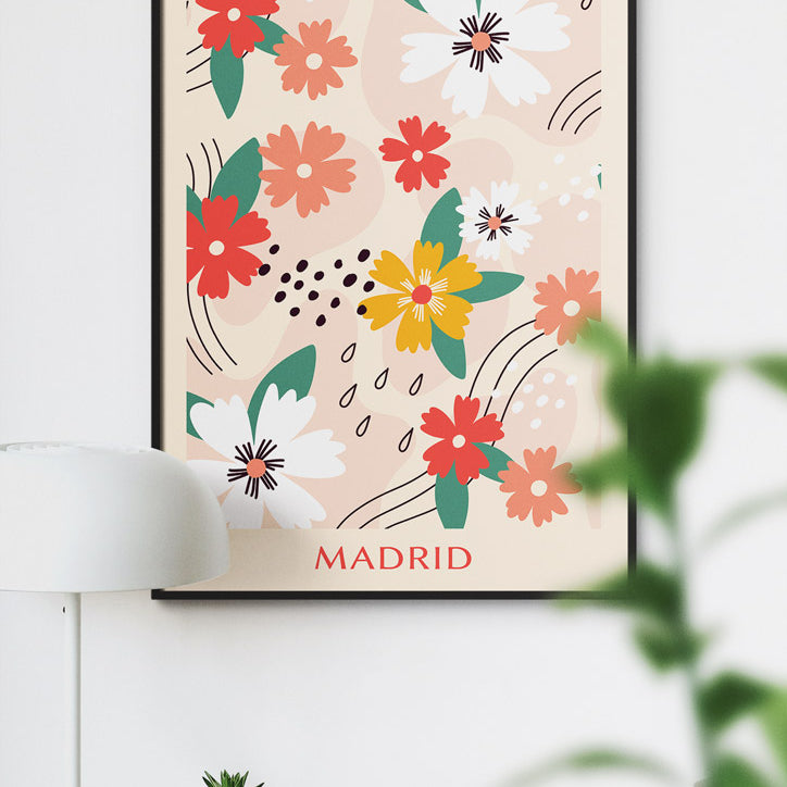 Colourful floral poster for the Madrid Flower Market. See the full Flower Market Collection here >