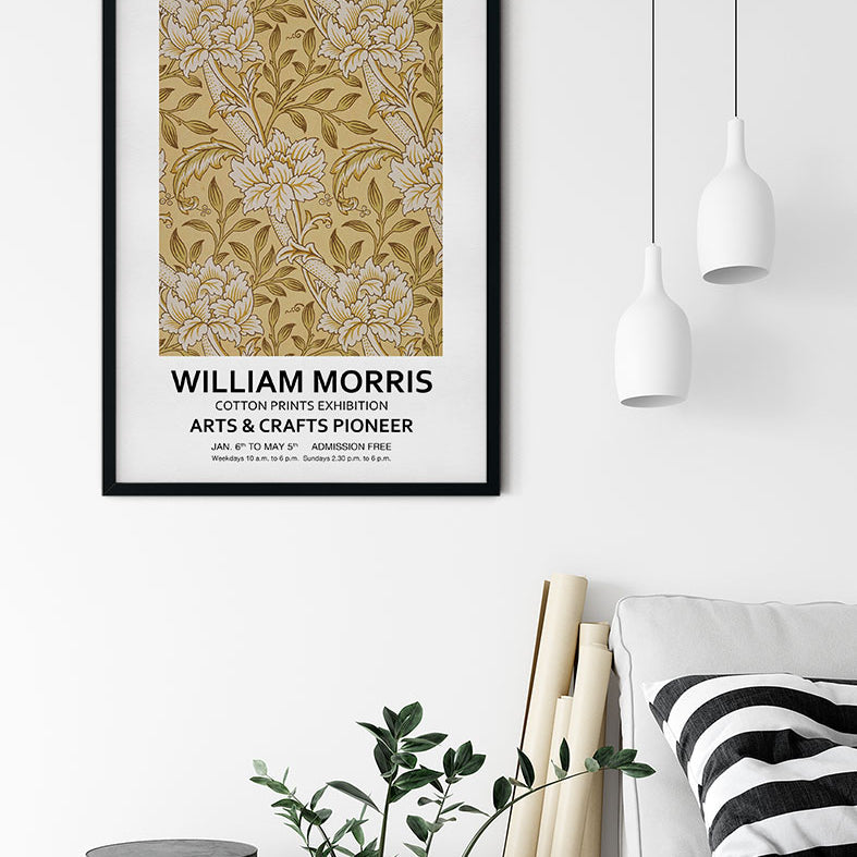 This stunning William Morris art print boasts an iconic floral pattern known as Hammersmith. With its captivating hues and intricate details, this poster is a great way to add a touch of flair to any room. Combining beauty and style, this piece is sure to bring a unique atmosphere to any space.