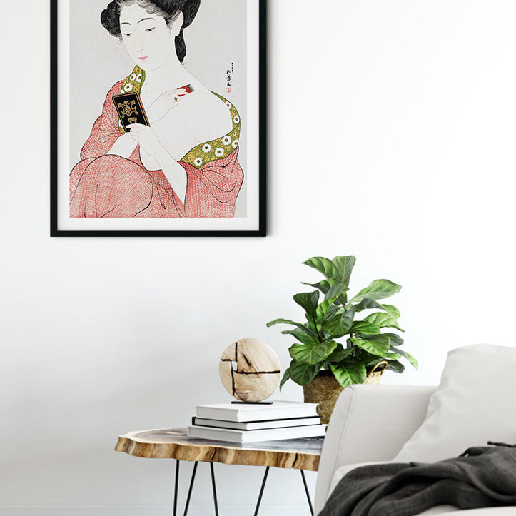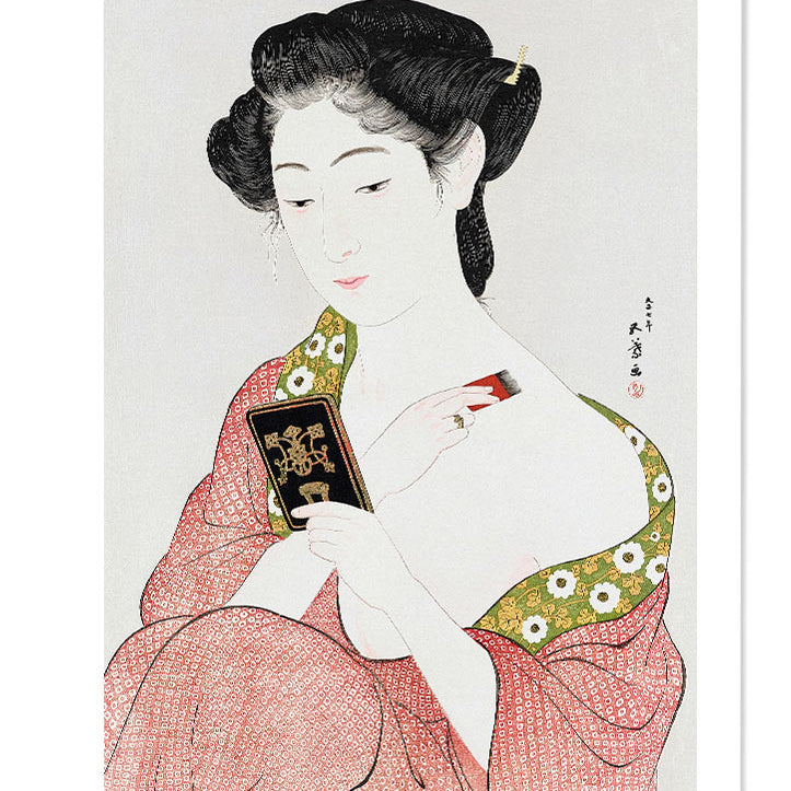 Vintage Japanese wall art. Woman Applying Powder art print in high resolution by Goyō Hashiguchi.