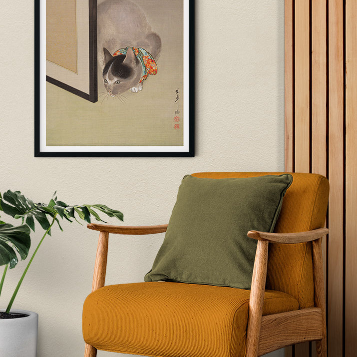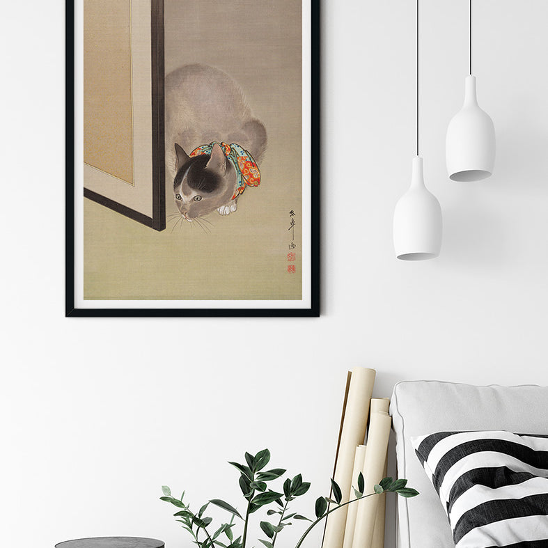 Cat Watching a Spider Poster Print by Oide Toko.