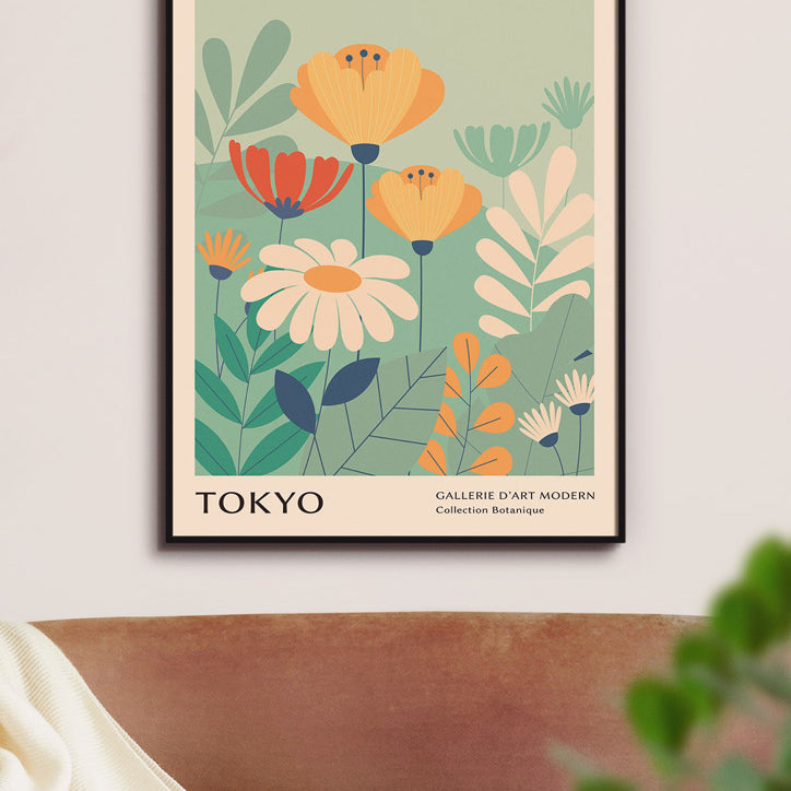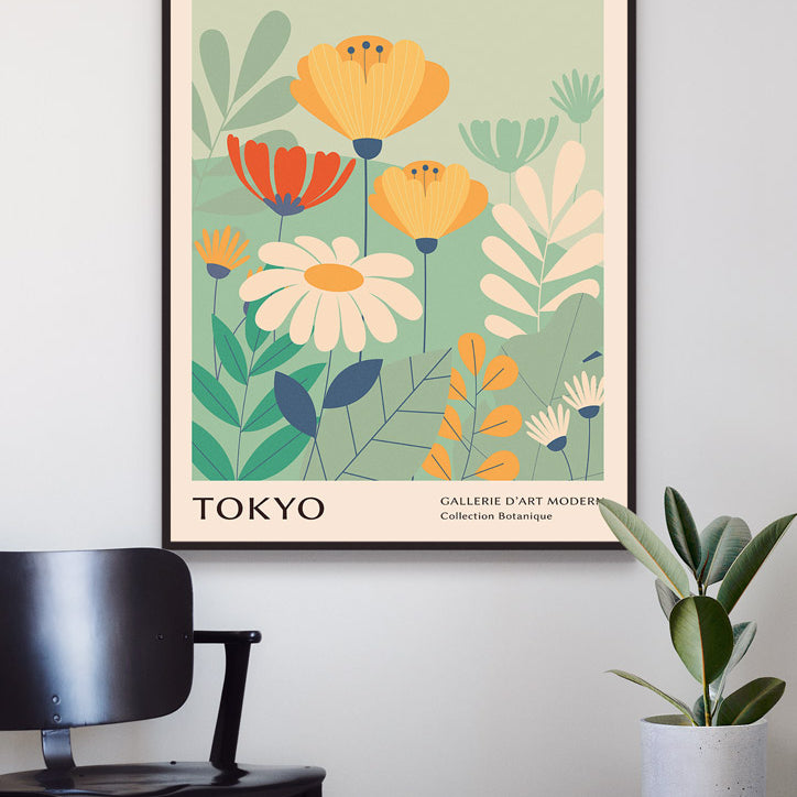 A green, white and yellow Tokyo Flower Market Poster to brighten up your home. See the full Flower Market Collection here >